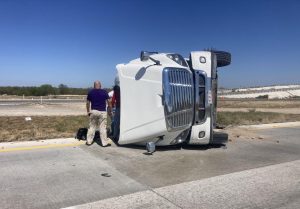 Vuelca tractocamión en la Autopista de la Carretera Nacional