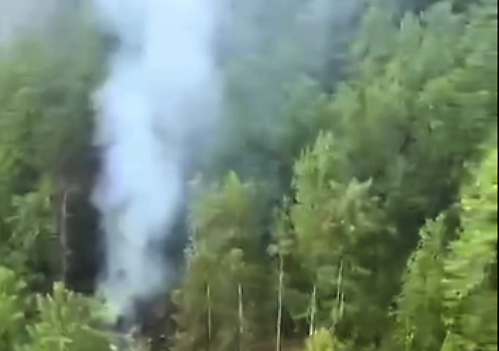 Imágenes del sitio del accidente reportado, difundidas por los medios estatales rusos, muestran escombros esparcidos entre densos bosques, rodeados de columnas de humo.