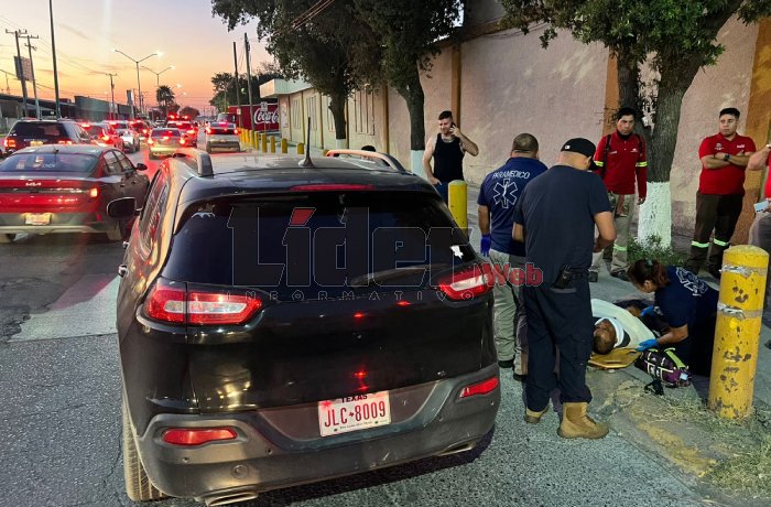 NUEVO LAREDO, TAM.- La falta de condiciones seguras para quienes se trasladan en bicicleta quedó de manifiesto este jueves, luego de que un empleado de la embotelladora Coca-Cola resultara lesionado al ser embestido por una camioneta Jeep Cherokee en el bulevar Lago de Chapala, frente al estacionamiento de la empresa.