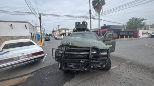 Nuevo Laredo, Tam.-La imprudencia de elementos de la Secretaría de la Defensa Nacional (SEDENA) volvió a quedar en evidencia tras un accidente vehicular registrado en la colonia Juárez, el cual dejó a una persona lesionada.