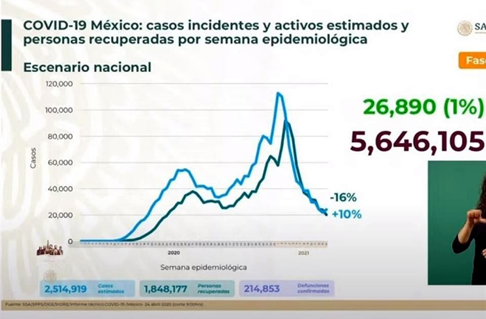 En tanto, estimó que, a nivel nacional, hay 26 mil 890 casos activos, es decir, aquellos que presentaron síntomas en los últimos 14 días.