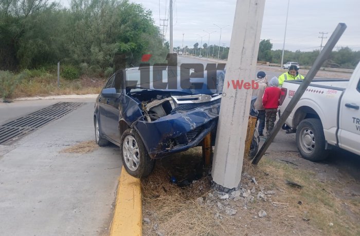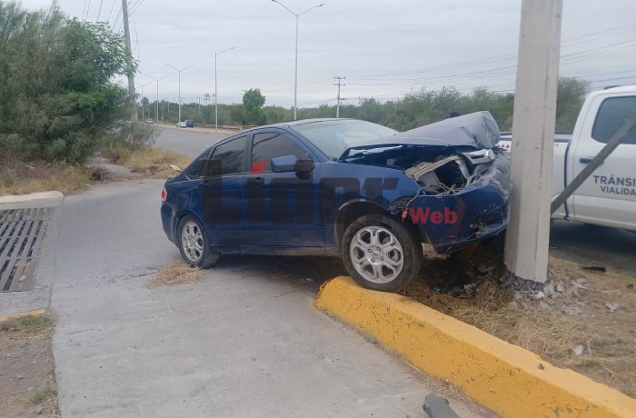 NUEVO LAREDO, TAM.- Un automóvil terminó chocado contra un poste de concreto propiedad de la Comisión Federal de Electricidad, luego de que su conductor perdiera el control y posteriormente huyera del lugar, dejando la unidad abandonada.