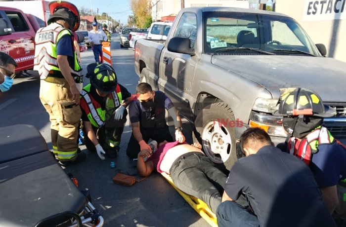 NUEVO LAREDO, TAM.- Una mujer resultó lesionada tras ser atropellada mientras intentaba cruzar la calle en el cruce de Iturbide y Morelos, en hechos ocurridos la tarde de este lunes.