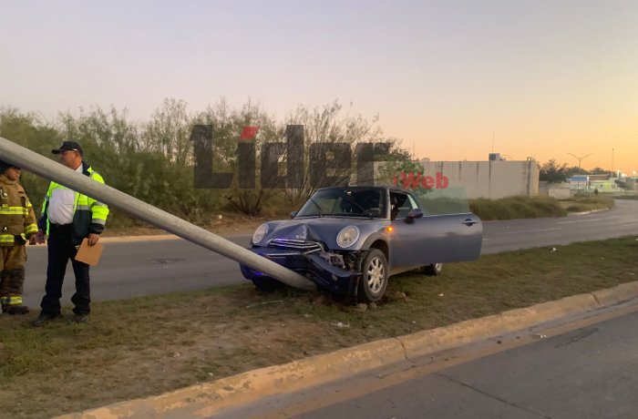Abandona conductor vehículo tras chocar contra poste en colonia Los Encinos