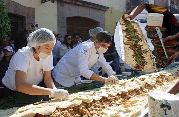 En el taco gigante los organizadores y participantes calculan invertir más de 100 mil pesos en los insumos, quienes buscan una certificación de Récord Guinness, al tratar de superar los 102 metros de largo del Taco de Querétaro.