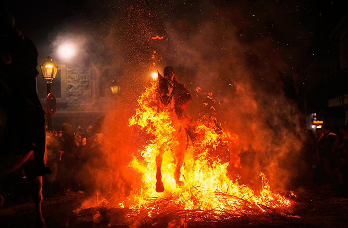 SAN BARTOLOMÉ DE PINARES, España.- Los caballos galoparon a través de imponentes llamas el viernes en una tradición anual centenaria en el pueblo español de San Bartolomé de Pinares en honor a San Antonio Abad, el patrón de los animales.