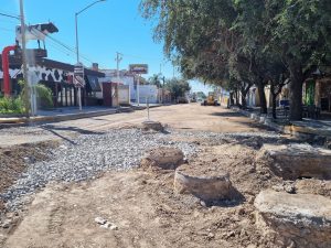 En el tramo que se está repavimentando, entre la avenida Reynosa y Lerdo de Tejada, se pueden observar grandes pozos en la vía, aparentemente relacionados con conexiones de agua para los negocios.