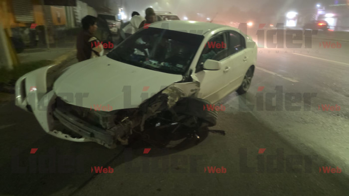 NUEVO LAREDO, TAM.- Una mujer de 59 años resultó lesionada luego de que una camioneta chocara contra el vehículo en el que se encontraba sentada en el asiento del copiloto, en un accidente ocurrido en la colonia Los Presidentes, cerca del Banco del Bienestar.