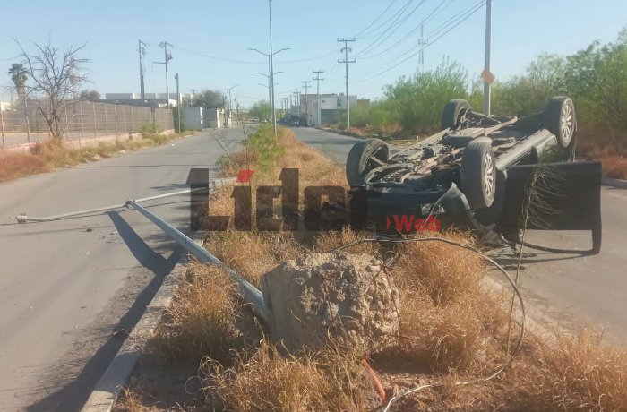 NUEVO LAREDO, TAM.- Una camioneta Ford Edge terminó volcada y abandonada luego de chocar contra un arbotante en la colonia Los Encinos. El accidente ocurrió en la intersección de las calles Arandillo y Emiliano Zapata, en la zona sur de la ciudad, según informó Tránsito Municipal.