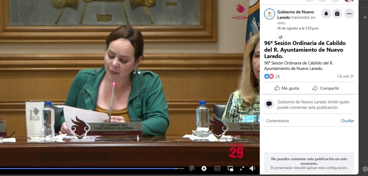 Las nuevas declaraciones desafortunadas de Carmen Lilia Canturosas en la Junta de Cabildo, originaron el enojo de quienes veían la trasmisión, por lo que de inmediato se ordenó restringir los comentarios en esa publicación en la red del Gobierno municipal.