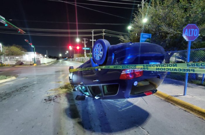 El exceso de velocidad provocó la volcadura de una Mazda Tribute cerca del Bulevar Universidad; gracias al uso del cinturón, todos resultaron ilesos
