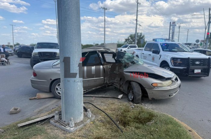Resulta joven gravemente herido tras chocar automóvil contra poste metálico