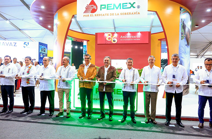 El gobernador Américo Villarreal y el director general de Pemex, Octavio Romero Oropeza, presiden en Tampico el inicio del evento más importante de la industria petrolera