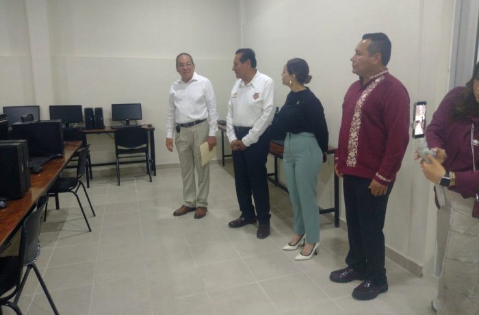 “En esa placa aparece el nombre de nuestra alcaldesa, Carmen Lilia Canturosas, porque es la que está en funciones y el nombre de un servidor como director. Posterior a la develación, se realizó el recorrido e inauguración de los laboratorios: son 55 equipos de cómputo con sus softwares ya instalados y todo con internet. Además, cada laboratorio cuenta con seis aires acondicionados y mobiliario totalmente nuevo, para mayor comodidad durante las prácticas”, informó el director del CBTIS 137, José Lorenzo Villegas Robledo.