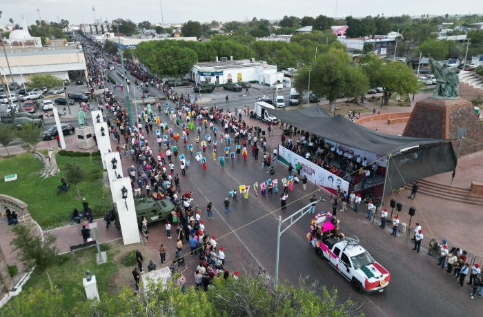 La alcaldesa Carmen Lilia Canturosas Villarreal encabezó esta mañana los actos cívicos y el tradicional Desfile Cívico Militar, acompañada por autoridades militares, educativas y cientos de familias que se dieron cita para rendir homenaje a los héroes de 1910.