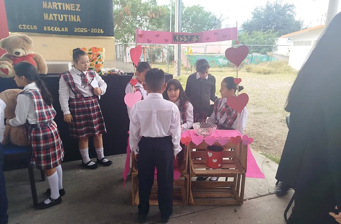 Así mismo en esta institución de nivel básico de educación, se armaron en el teatro de la explanada dos escenarios para que los jóvenes pudieran tomarse fotos y conservar un recuerdo alusivo a la celebración del 14 de febrero 2026.