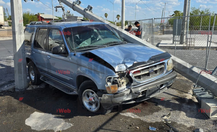 NUEVO LAREDO, TAM .- Un hombre salió ileso luego de que su camioneta impactara y derribara un poste de concreto de la Comisión Federal de Electricidad (CFE) sobre la Carretera Aeropuerto.