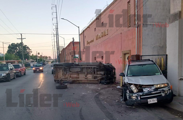 Al encontrarse entre las calles Gutiérrez y Mina, quien iba al volante de la camioneta pierde el control, se carga a la derecha, choca contra un vehículo estacionado y queda volcada.