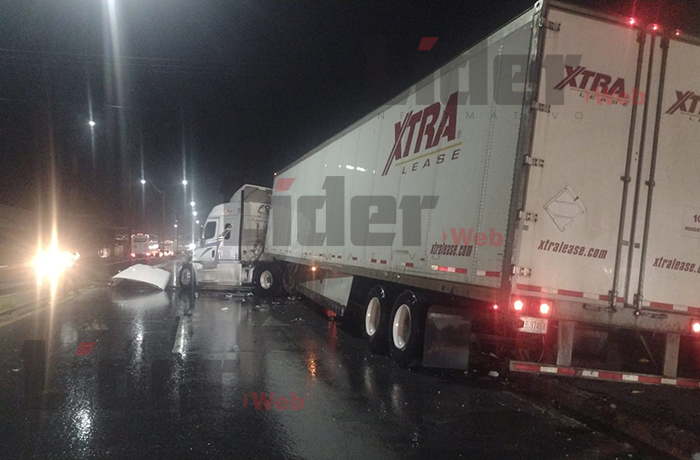 NUEVO LAREDO, TAM.- Al descomponerse los limpiavidrios del tracto camión que conducía, un trailero perdió el control y terminó chocando contra el barandal, divisor de carriles.