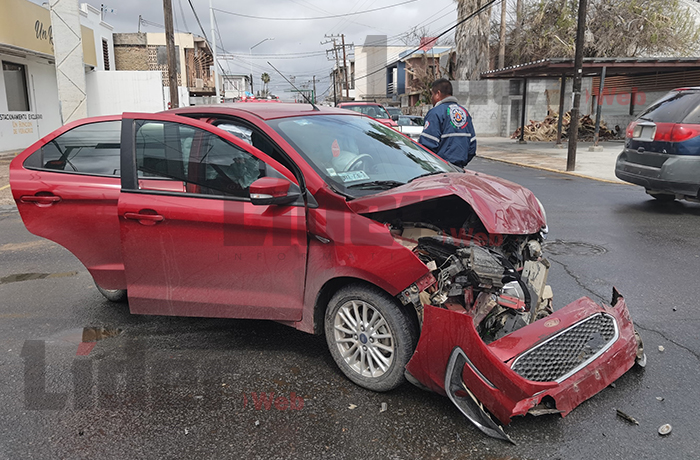 NUEVO LAREDO, TAM.- Daños por varios miles de pesos fue el saldo de un aparatoso accidente ocurrido en transitado crucero de la colonia Juárez, cuando una conductora no respetó la señal de alto.