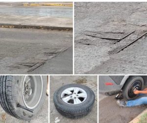 Así que además de lidiar con inundaciones, los automovilistas deben sortear las varillas descubiertas que representan un riesgo para sus unidades.