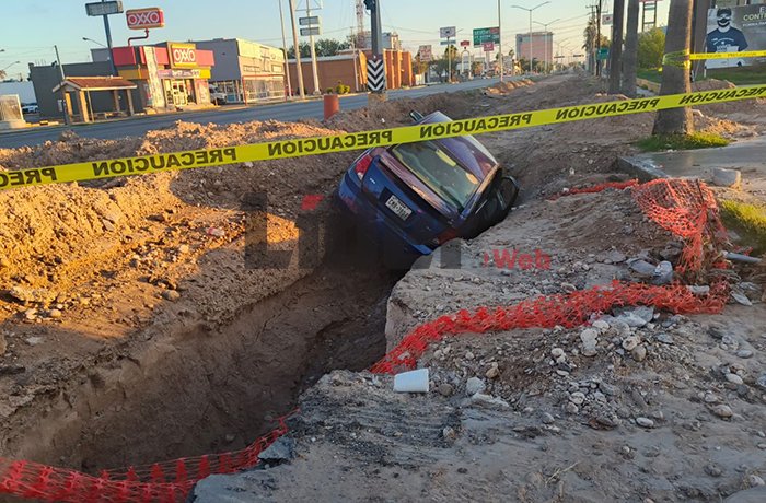 NUEVO LAREDO, TAM.- Un conductor perdió el control de su vehículo y terminó dentro de una zanja en la intersección de la avenida Reforma y la calle 15 de Septiembre, en el centro de Nuevo Laredo.