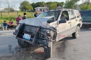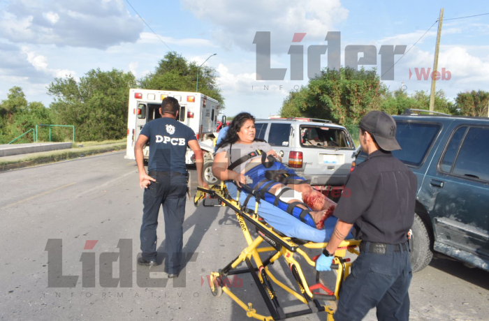 NUEVO LAREDO, TAM.- Un fuerte choque frontal se registró debajo de los puentes internacionales 1 y 2, que conectan Nuevo Laredo con Laredo, Texas, resultando en dos personas lesionadas, una de ellas de gravedad.