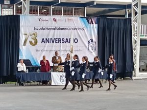 Nuevo Laredo, Tam. – La Escuela Normal Urbana Cuauhtémoc, este viernes 24 de octubre, tuvo a bien llevar a cabo una ceremonia en conmemoración al LXXIII aniversario de la fundación de este plantel, donde estuvieron presentes la directora de esta institución académica, Rosa Amelia Elizondo Cantú así como Ernesto Ferrara Theriot, Secretario de Educación, Cultura y Deporte Municipal, entre otras autoridades educativas.