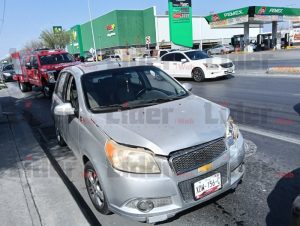 NUEVO LAREDO, TAM .- Un accidente vehicular registrado la tarde de este viernes sobre la avenida César López de Lara, a la altura de la calle Nuevo León, dejó como saldo daños materiales y una persona con lesiones leves, frente a la central de autobuses Senda en Nuevo Laredo.