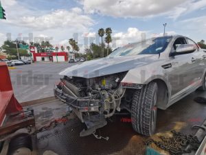 Por la avenida Reforma, de sur a norte, iba un vehículo Kia Optima modelo 2013, placas de Texas, conducido por Brenda, de 29 años, quien tenía luz verde en el semáforo e iba dando vuelta a la izquierda, cuando se produce el encontronazo.