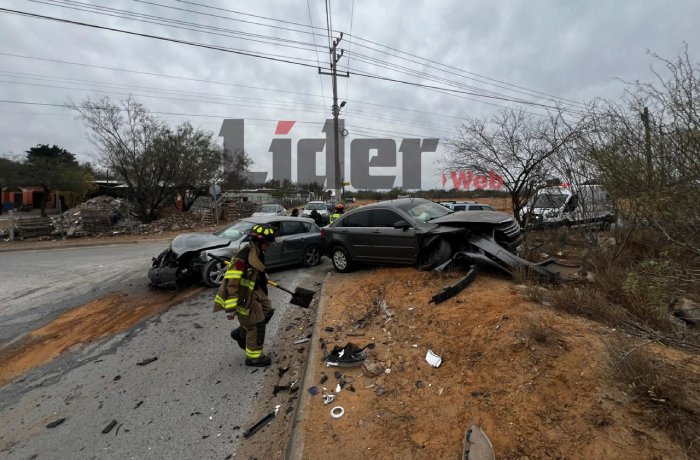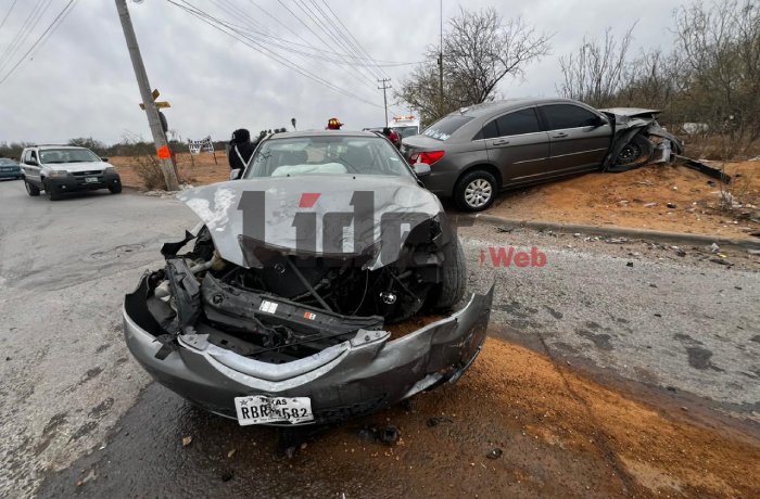 NUEVO LAREDO, TAM.- Un choque entre dos automóviles registrado en la colonia Primavera movilizó a cuerpos de auxilio y dejó importantes daños materiales, luego de que uno de los vehículos terminara fuera de la vialidad.