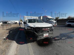 NUEVO LAREDO, TAM .- Un choque por alcance registrado en la Carretera Aeropuerto, a la altura del puente vehicular del entronque con la avenida Monterrey, frente a la colonia Colinas del Sur, dejó como saldo daños materiales de consideración y la movilización de cuerpos de emergencia.