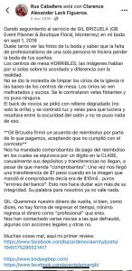 En septiembre de 2018, Rus Caballero hizo pública la denuncia en contra de Gil Brizuela, que en Monterrey operaba un negocio llamado GB Event Planner & Boutique Floral, Monterrey, en donde realizo diversas estafas y huyo a Nuevo Laredo
