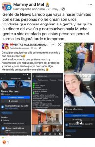 Nuevo Laredo, Tam .— Luego de varias denuncias públicas, hechas por afectados por estafas relacionadas con traspasos y ventas de viviendas adquiridas por medio de Infonavit, una de las implicadas, Jessy Rivera Martínez, de 32 años, aceptó su responsabilidad y aseguró que va a devolver el dinero.