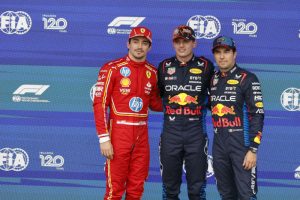Leclerc tuvo el siguiente mejor tiempo con su Ferrari, seguido del mexicano Sergio Pérez de Red Bull, quien iniciará segundo.