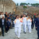 Jackie Chan lleva la antorcha olímpica de Milán-Cortina por las ruinas de Pompeya