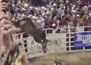 Toro de rodeo salta valla de arena de Oregon; deja 3 personas heridas