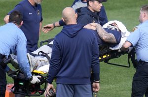 Junis, de Cerveceros, es llevado al hospital tras recibir batazo en el cuello en práctica de bateo