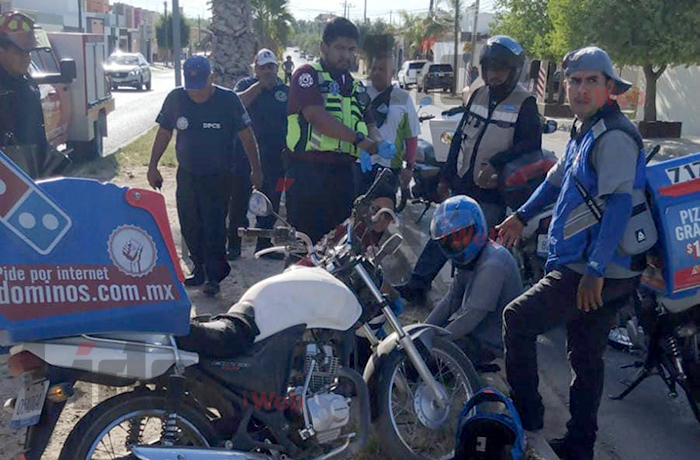 NUEVO LAREDO, TAM.- Con lesiones que ameritaron su traslado a un hospital resultó un repartidor de pizzas, al derrapar cuando circulaba por calles de la colonia del Issste.