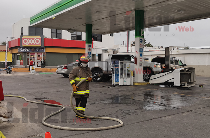 El despachador fue atropellado y resultó lesionado, además la bomba de gasolina fue derribada. Empleados detuvieron toda actividad y evacuaron el lugar, arribando elementos de Protección Civil y Bomberos, ante un posible derrame de gasolina.