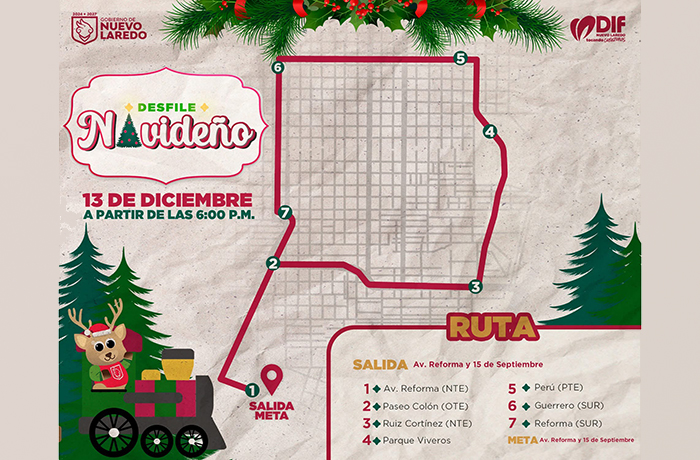 Nuevo Laredo, Tam.- El Gobierno Municipal de Nuevo Laredo informó que la convocatoria para participar en el tradicional Desfile Navideño que se llevará a cabo el 13 de diciembre, quedó oficialmente cerrada luego de alcanzar una amplia respuesta por parte de la comunidad. En total, se registraron 91 participantes, quienes integrarán más de 180 unidades motrices que formarán parte del recorrido.