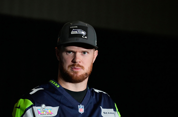 Sam Darnold, quarterback de los Seahawks de Seattle, habla en una conferencia de prensa el jueves 5 de febrero de 2026 en San José, California (AP Foto/Brynn Anderson)