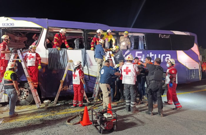 De acuerdo con los primeros reportes, el incidente fue atendido por personal de la Guardia Estatal en coordinación con Protección Civil, Cruz Roja, Guardia Nacional y otras corporaciones de auxilio, luego de que el C-4 alertara sobre un choque entre un autobús de la línea Futura y un tractocamión Kenworth, cuyo conductor no fue localizado en el sitio.