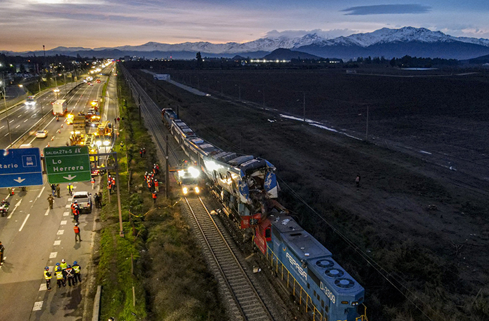 El accidente se produjo en la madrugada del jueves cuando un tren que estaba operando en pruebas con 10 tripulantes de personal técnico, sin pasajeros, colisionó con unos de carga en la localidad de San Bernardo, informó el ministro de Transporte y Telecomunicaciones, Juan Carlos Muñoz, a AP.