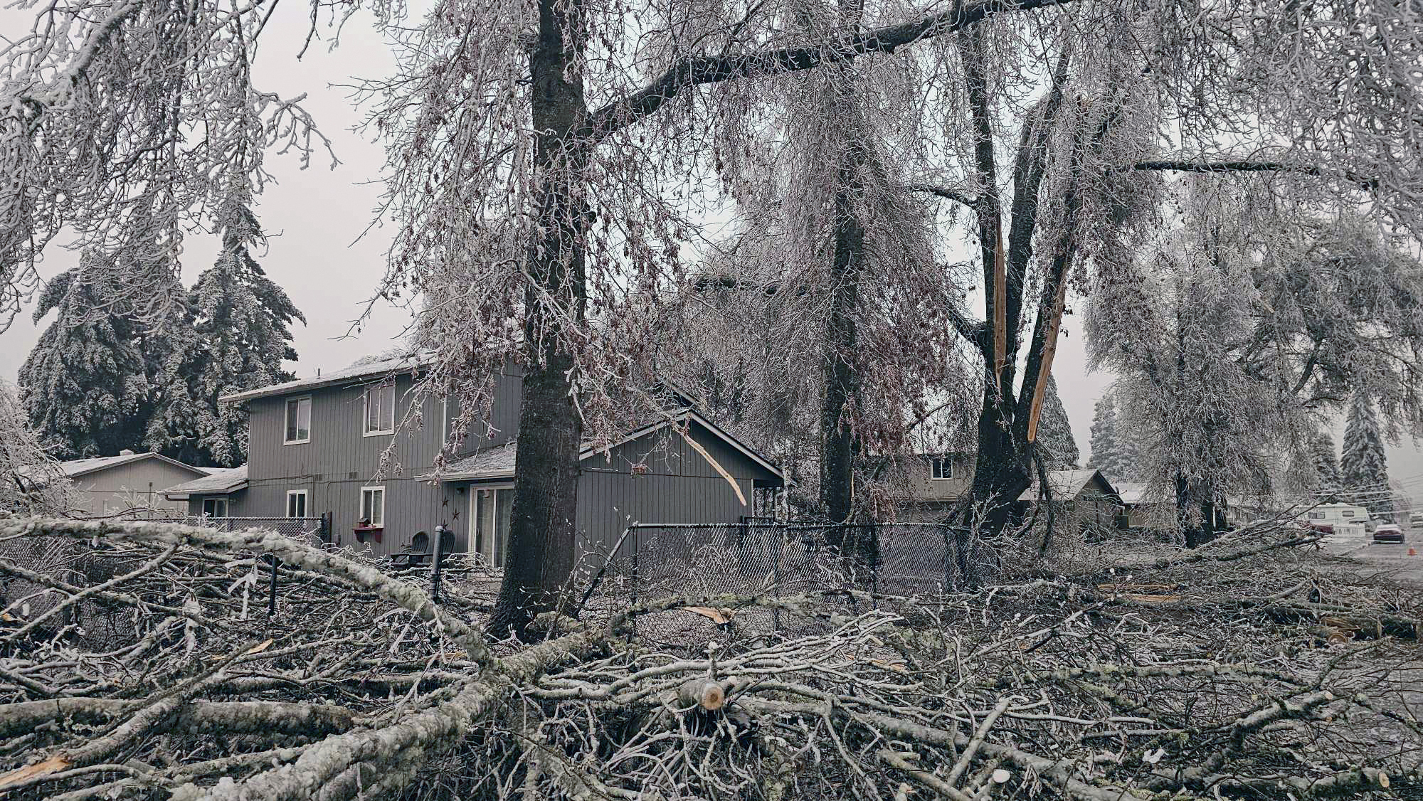 Miles de residentes están sin electricidad desde el fin de semana pasado en partes del valle Willamette en Oregon debido a la lluvia helada.