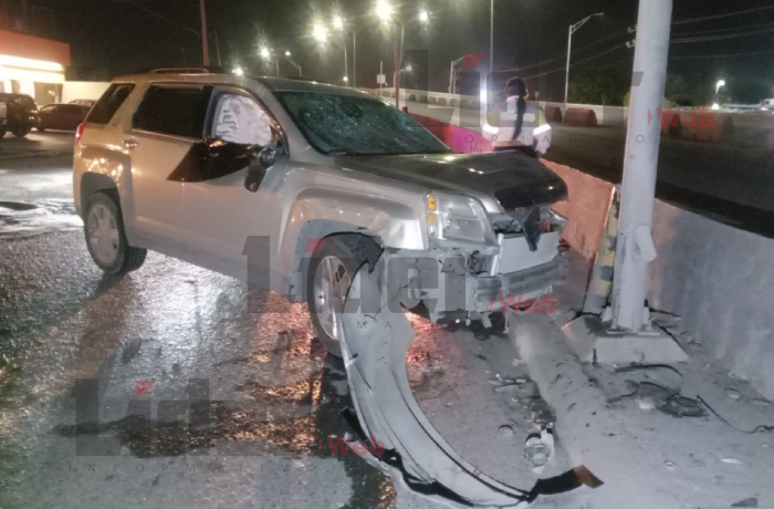 NUEVO LAREDO, TAM.- Un hombre se quedó dormido mientras conducía una camioneta y terminó chocando contra un tubo de contención en la Calzada de los Héroes o Carretera a Anáhuac.