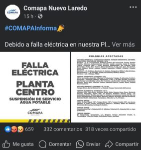 A pesar de las reiteradas explicaciones de la alcaldesa Canturosas, quien asegura que las interrupciones se deben a factores externos a COMAPA y no a la falta de mantenimiento, inversión en nuevos equipos o ineficiencia en los trabajos, los neolaredenses dudan de la veracidad de estas afirmaciones. La última falla reportada ocurrió el jueves 25 de julio, afectando a más de 40 colonias durante más de 16 horas, dejando a muchas familias sin acceso a agua potable y sin la posibilidad de almacenar suficiente agua debido a la falta de cisternas o tinacos.