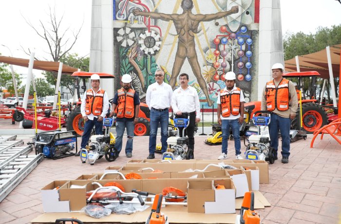 En la ceremonia realizada en el Centro Universitario Victoria, se dotó de nuevo equipo y herramientas consistentes en hidrolavadoras, escaleras, motosierras, compactadoras, cortadoras de piso, tractores, generadores eléctricos y gatos hidráulicos, entre otras.