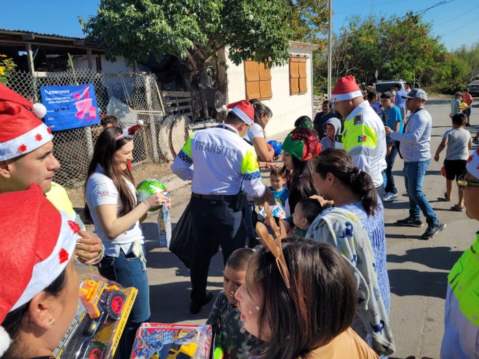 Esta iniciativa, que el personal de Tránsito mantiene desde hace dos años durante la temporada decembrina, tiene un carácter social y altruista, enfocada en brindar apoyo y esperanza a familias que habitan en sectores considerados vulnerables.