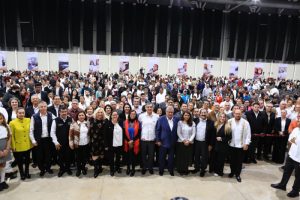 “Permítanme solamente felicitarlos por el trabajo que realizan y lo voy a repetir, día a día, todas las horas, todos los días del año, ahí estamos desde temprano atendiendo a los alumnos y a las alumnas. Ese es un trabajo que se debe reconocer y que tenemos que hacer que la sociedad en su conjunto reconozca el papel del magisterio en la construcción de este país, de la patria que somos, pero, sobre todo, de la nación que estamos construyendo”, apuntó.